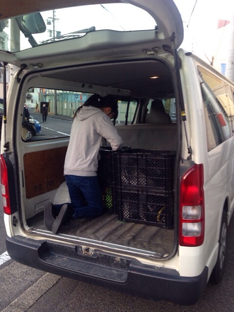 そこから、車に積み込みます。